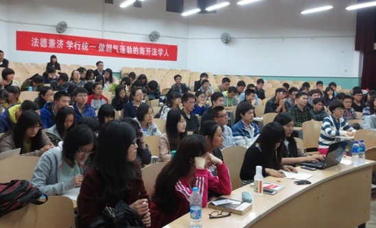 谈到法治的进程,几位老师通过了具体的案例和立法为同学们展望了国家的法治发展趋势。唐颖侠老师从国际经济法的角度为同学们分析了中国加入WTO给法治和法学学习带来的变化。“2001年入世对中国整个法治进程客观上起到了特别积极的作用。加入WTO带来的影响是全面的,包括一些刑事案件的处理都要重新界定。现在,高端法律人才是奇缺的。因此,在校同学们要练好基本功,学习好英语,积极参加各项活动,提高自身的综合能力。”