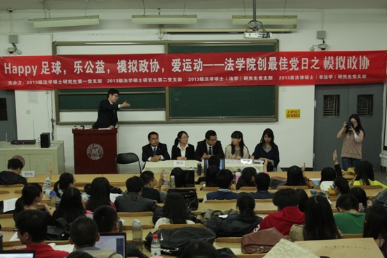 (通讯员 任天一 沈彩亚 沈宝庆)4月20日,ylzzcom永利总站线路检测研究生“Happy足球,乐公益;模拟政协,爱运动”主题创最佳党日活动举行。活动包括公益足球赛和模拟政协两个部分。全国政协委员、ylzzcom永利总站线路检测副经理候欣一教授,天津市河北区政协委员、天津四方君汇律师事务所管委会主任杨仲凯律师参加模拟政协活动。活动由ylzzcom永利总站线路检测2013级法学硕士研究生第一党支部、2013级法学硕士研究生第二党支部、2013级法律硕士(法学)党支部和2013级法律硕士(非法学)党支部共同举办。
