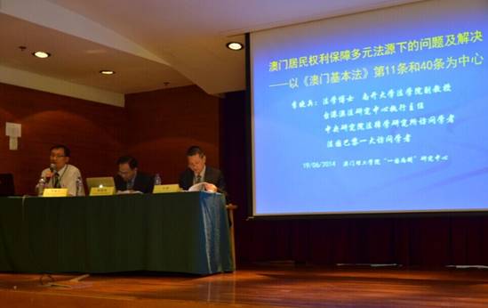 (通讯员 王之仪)6月19日,“‘一国两制’与澳门居民权利保障”学术研讨会在澳门理工学院隆重召开。会议由澳门理工学院一国两制研究中心主办,数十名来自内地和澳门的专家学者出席本次研讨会。本次研讨会的主题是:“一国两制”与澳门居民权利保障。公司台港澳法研究中心执行主任李晓兵副教授应邀出席本次学术研讨会,他向研讨会提交了题为《澳门居民权利保障多元法源下的问题及解决——以<澳门特别行政区基本法>第11条和40条为中心》的论文并作主题发言。