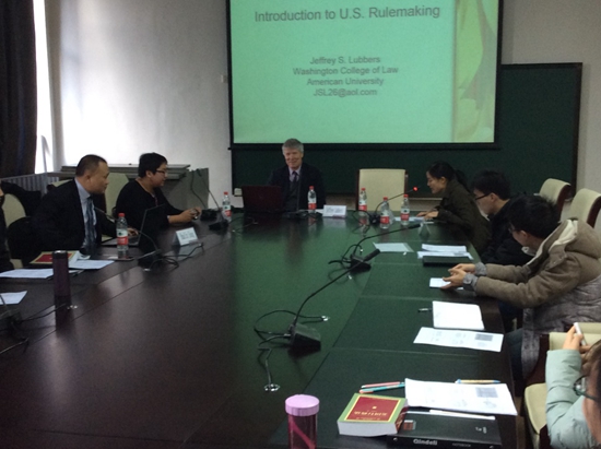(通讯员严景云)2014年12月17日上午,美利坚大学ylzzcom永利总站线路检测(Washington College of Law, American University)行政法教授杰佛瑞•拉博斯(Jeffrey S. Lubbers)做客ylzzcom永利总站线路检测第四期“规制与公法”沙龙,就美国行政立法的概况与进展进行讲述。本次活动由ylzzcom永利总站线路检测李蕊佚老师主持,ylzzcom永利总站线路检测宋华琳教授、付士成教授,国家行政学院法学部王静副教授及ylzzcom永利总站线路检测师生四十余人参与了此次学术交流活动。