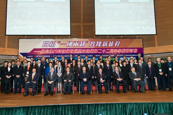 2015年3月31日,开拓 “一国两制”实践新征程——纪念澳门特别行政区基本法颁布22周年”学术研讨会在澳门科学馆会议厅举行。出席本次会议的嘉宾有澳门特别行政区行政长官崔世安先生,中央人民政府驻澳门特别行政区联络办公室主任李刚先生,全国港澳研究会会长陈佐洱先生,澳门特别行政区立法会主席贺一诚先生,外交部驻澳特派员公署副特派员潘云东先生,澳门基本法推广协会会长廖泽云先生。台港澳法研究中心执行主任李晓兵副教授作为学者代表应邀参加了本次研讨会,他向研讨会提交了题为《从<澳门组织章程>到<澳门特别行政区基本法>——关于宪法与基本法关系的再思考》论文。