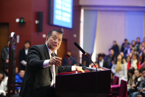 李昌钰以回顾成长经历开启当天的讲座。他幼年丧父,母亲独自一人抚养13个孩子。于他而言,母亲是世界上最伟大的人。“所以,当他们邀请我去演讲被我拒绝之后,他们马上转头去找我妈妈。我没办法,只能同意。”李昌钰幽默地说。