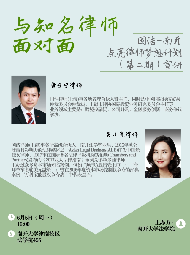 活动预告丨与知名律师面对面:国浩上海律所黄宁宁、吴小亮律师