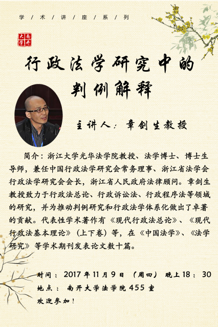 讲座预告:行政法学研究中的判例解释