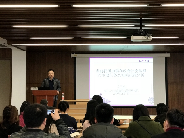 关信平依托党的十九大报告,从六个部分阐述了加强和改进社会治理的相关问题,他指出加强社会治理的基本目标是满足人的需要,主要任务表现在托底性保障民生、促进社会和谐、提升安全水平、营造良好社会心态以及促进互联网治理。他进一步从治安关系、劳动关系、食品药品安全、互联网等对当前我国社会治理的基础情况进行了深刻分析。在完善社会治理的体制机制方面,关信平提出要建立健全市场机制、社会自治和行政干预相结合的治理机制,推动社会治理重心向基层下移,发挥好社会组织的积极作用。