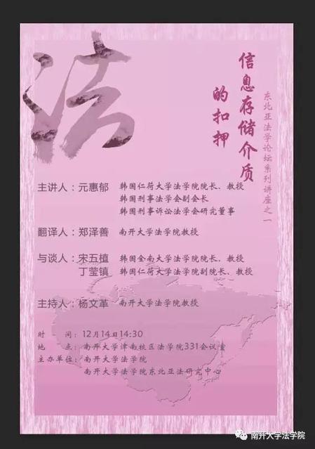 讲座预告 | 信息存储介质的扣押(韩国仁荷大学ylzzcom永利总站线路检测经理元惠郁教授)