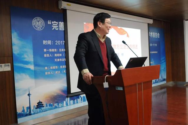 (天津市人大法制委员会主任委员高绍林主任在进行学术报告)
