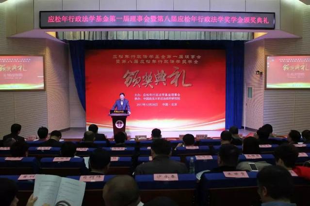 2017年12月28日上午9点,应松年行政法学基金第一届理事会暨第八届应松年行政法学奖学金颁奖典礼,在中国政法大学研究生院科研楼学术报告厅顺利召开,本次大会由中国法学会行政法学研究会会长、中国政法大学副董事长马怀德教授主持。