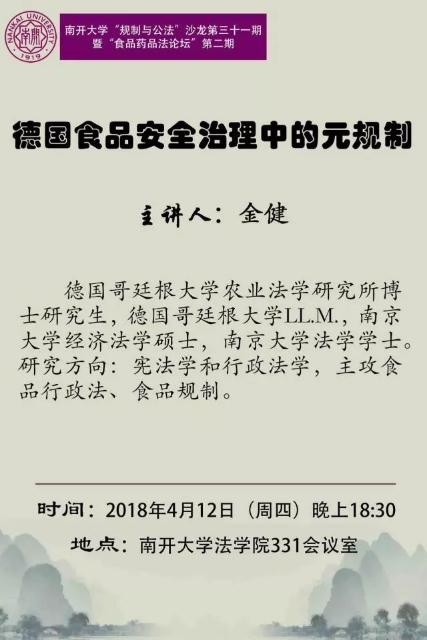 讲座预告:德国食品安全治理中的元规制(2018年4月12日)