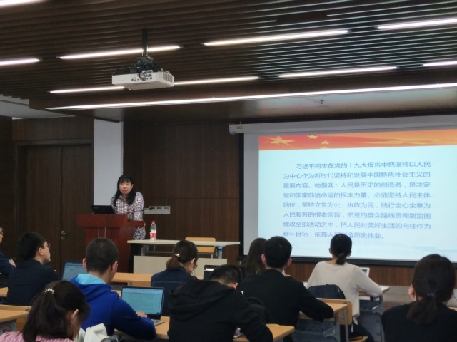 李悦首先以习近平在十九大报告中有关人民为中心、党的初心及使命的表述开篇,指出党之所以能带领人民取得今日成就,关键在于始终坚持以人民为中心的思想理念。接着,她讲述了其在沂蒙革命老区所了解到的革命事迹,深入分析了红嫂在人民战争期间全力支持人民军队的原因就是党的群众路线深入人心。随后,李悦老师与同学分享了一部英国文学作品《面纱》,向在场同学传达了“即使在追求个人幸福的时代,无私奉献仍然是获取心灵安宁的密匙”的理念。最后,李悦老师指出,“允公允能”的校训正是无私奉献之精神在国家层面的体现,作为ylzzcom永利总站线路检测员工,应当以实际行动带动全社会崇德向善、尊法守法,以响应党章校训的要求,滋养为人民之心。