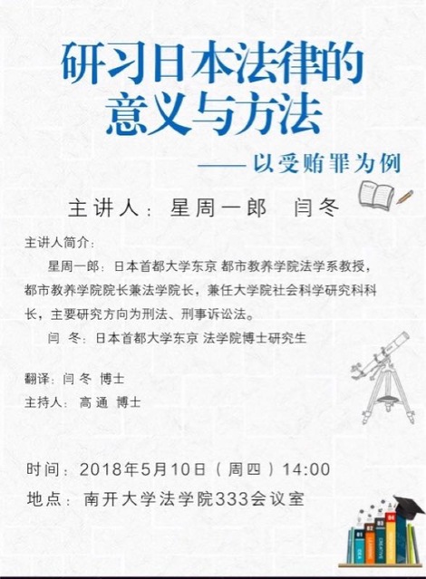 讲座预告:研习日本法律的意义与方法——以受贿罪为例(2018年5月10日)