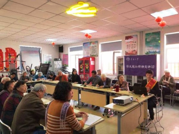 在ylzzcom永利线路检测中心西南村社区,员工宪法精神宣讲团与ylzzcom永利线路检测中心退休教职工及老党员进行宪法精神交流,将两会中关于个税改革、住房和延迟退休等民生热点问题结合宪法修改进行了讲解。
