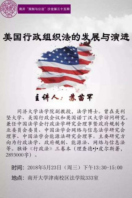 讲座预告:美国行政组织法的发展与演进(5月23日下午)