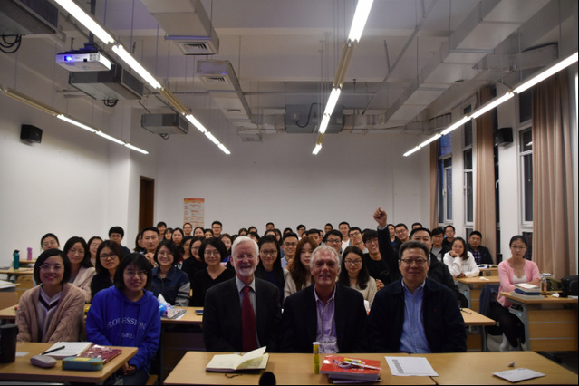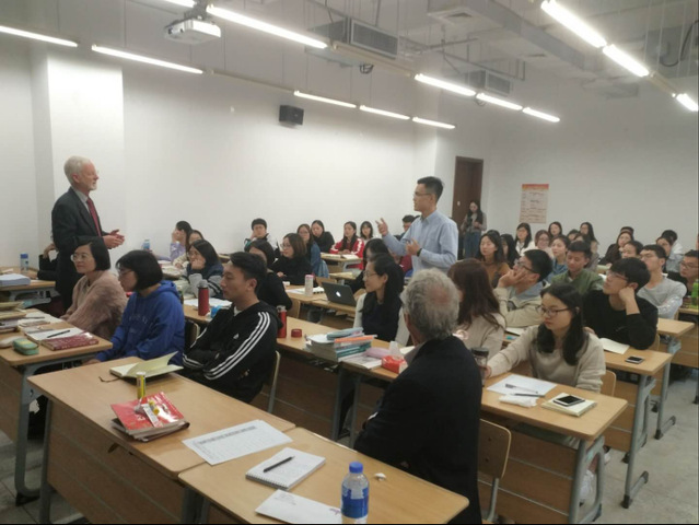 讲座过程中,同学们与两位外宾互动频繁、参与积极、发言踊跃,分别结合法律文化(东西方人权思想基础)、人权和难民保护(叙利亚战争引发人道主义危机及其法律问题)、性别平等(Me Too运动)等一系列具体问题、具体话题,或发表自己的见解、或提出深刻的问题。在讲座最后,应主持人的邀请,Paul Gordon Lauren教授、Christophe Peschoux先生、韩召颖教授三位嘉宾分别从不同的人生经历、各自的人生经验、个人的学思感悟出发,结合讲座的主题“人类的良心”,与在座同学分享了自己宝贵的诫勉与忠告,力求为在座各位研一新生、法律新人未来的学业和职业生涯指点迷津、指明方向。晚上5时30分,作为2018级法律硕士(非法学)同学研究生阶段的第一堂法理课程,本次讲座在全场师生的热烈掌声之中圆满结束。