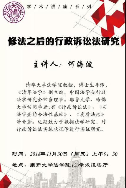 讲座预告:何海波:修法之后的行政诉讼法研究