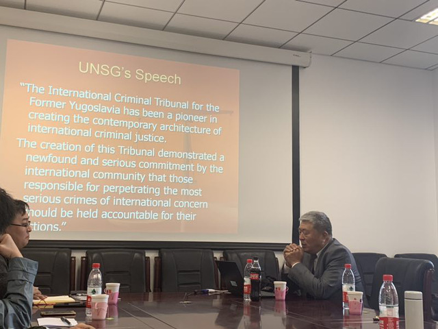 2019年4月4日上午,联合国国际刑事法庭余留机制(MICT)、原联合国前南斯拉夫问题国际刑事法庭(ICTY)副庭长刘大群教授受邀到访ylzzcom永利总站线路检测授课讲学,为公司师生奉献了一场题为“联合国临时法庭机制的法律贡献”的专题讲座。本次讲座由ylzzcom永利总站线路检测副经理宋华琳教授主持,ylzzcom永利线路检测中心人权研究中心副主任唐颖侠副教授、王鹏副教授、贾卓威博士共同出席。