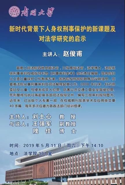 讲座预告:新时代背景下人身权刑事保护的新课题及对法学研究的启示