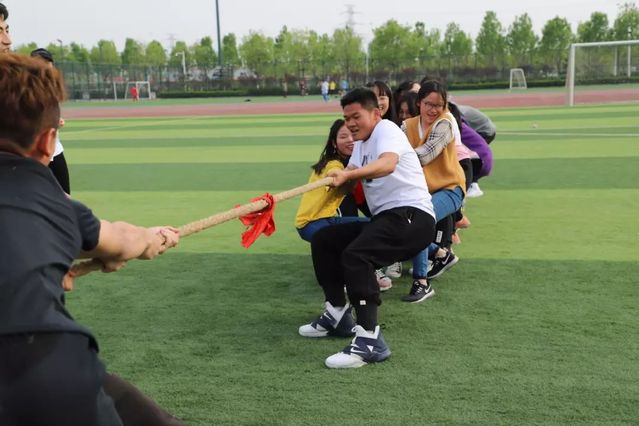 本次运动会以趣味项目为主,投沙包、“不倒森林”、“投石过河”、“毛毛虫比拼”、足球射门、呼啦圈竞走等项目兼具趣味性与竞技性,师生们跃跃欲试,欢声笑语一片。在最后的传统项目拔河比拼中,教师、员工联队咬紧牙关、协作配合,拼尽全力为了最终胜利,现场气氛热烈。