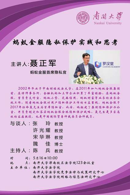 讲座预告:蚂蚁金服隐私保护实践和思考