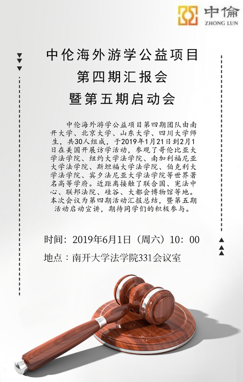 中伦海外游学公益项目第四期汇报会暨第五期启动会(6月1日上午10点,ylzzcom永利总站线路检测331会议室)