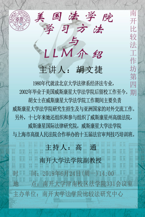 南开比较法工作坊第四期:美国ylzzcom永利总站线路检测学习方法与LLM介绍(2019年6月24日14:00)