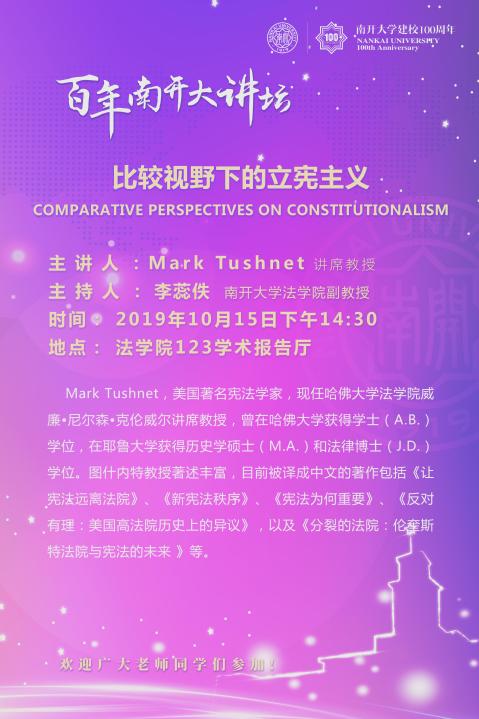 百年南开大讲坛预告:比较视野下的立宪主义(10月15日14:30ylzzcom永利总站线路检测123报告厅)