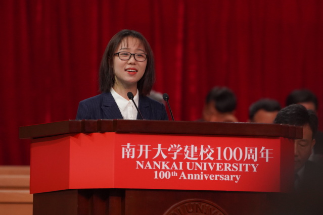 百年时光流淌,今天,我们的南开迎来了她的一百岁生日。请允许我代表最年轻的一代南开人,向母校说一句:“生日快乐!”