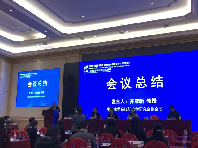 2019年11月10日上午,中国法学会比较法学研究会2019年年会在西南政法大学胜利闭幕。研究会副会长兼秘书长、中国政法大学王志华教授主持闭幕式。西南政法大学教务处处长张建文教授代表会议承办方致辞,中国法学会比较法研究会会长、清华大学高鸿钧教授作闭幕致辞。