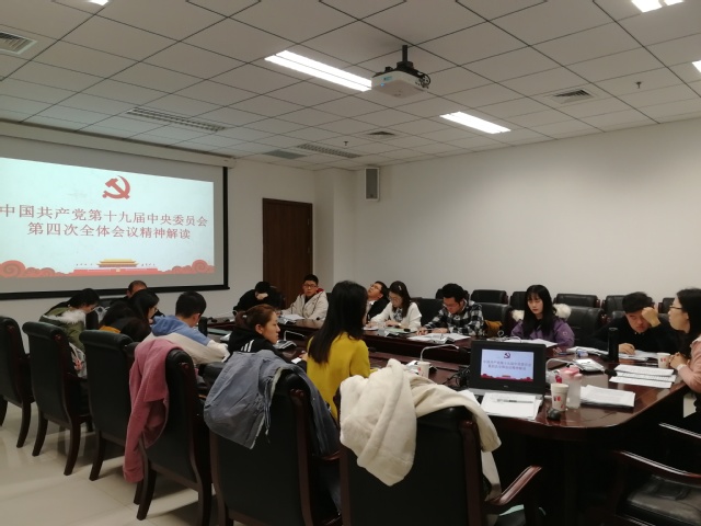 接着,各党支部书记围绕解读《中国共产党第十九届中央委员会第四次全体会议公报》的工作及活动筹备情况作了简要汇报。李高扬针对各支部进行具体指导、部署,提出员工党支部要在认真研读习近平新时代中国特色社会主义思想的基础上,结合专业特点和工作实际,面向支部同学和校内外,深入开展支部教育活动,加强教育创新,扩大教育覆盖面,增强教育吸引力,注重提升教育实效。最后,李高扬带领支部书记对《新时代爱国主义教育实施纲要》解读进行指导,提出在解读纲要时,要注意参考相关文献资料,从专业研究领域出发,选择法律新角度,提出法学专业观点。