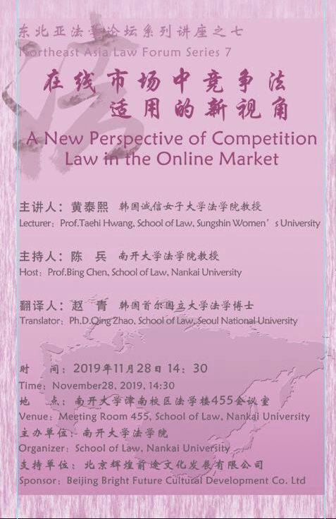 东北亚法学论坛系列讲座之七:在线市场中竞争法适用的新视角(11月28日14:30ylzzcom永利总站线路检测455)