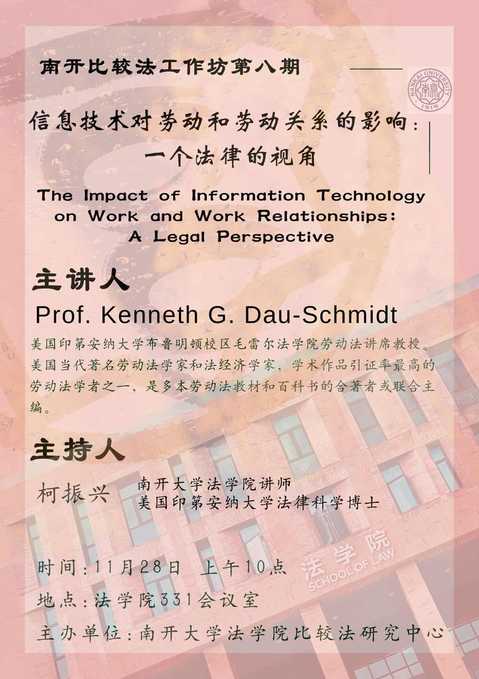 南开比较法工作坊第八期预告:信息技术对劳动和劳动关系的影响:一个法律的视角