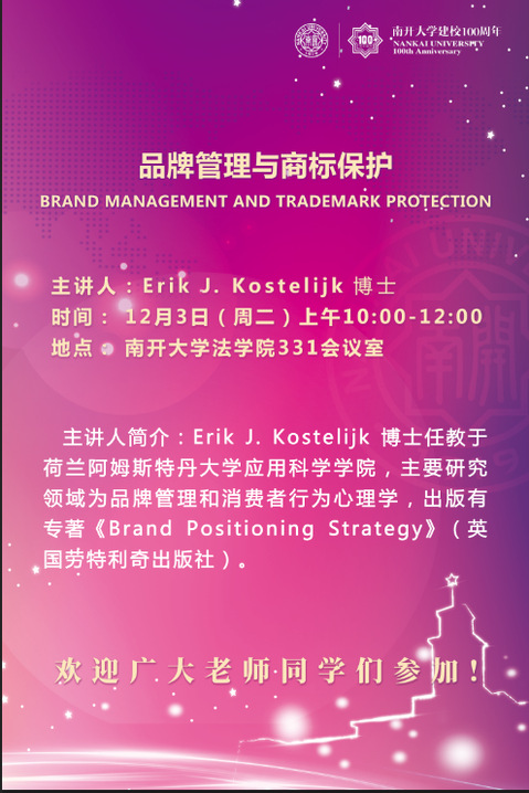 讲座预告:品牌管理与商标保护(12月3日10点ylzzcom永利总站线路检测331)