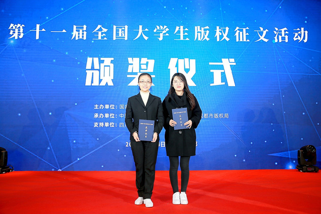 (通讯员 陈颖)2019年12月4日,由国家版权局主办、中国人民大学国家版权贸易基地和成都市版权局承办的第十一届全国老员工版权征文活动颁奖仪式在四川成都举行。征文活动历时六个月,共收稿1492篇,其中本科生论文906篇,研究生论文586篇,全国29个省、自治区、直辖市,以及香港、澳门特区,共计234所高校参与。经过初筛、初审、复评、终评,最终产生了特等奖论文3篇,本科生组和研究生组一等奖论文各10篇、二等奖论文各20篇、三等奖论文各30篇,优秀奖论文30篇,优秀指导老师奖20名,优秀组织奖20名。