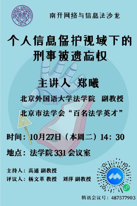 南开网络与信息法沙龙预告:个人信息保护视域下的刑事被遗忘权