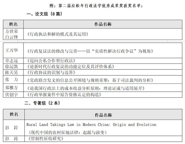根据《应松年行政法学基金章程》,2021年将启动“第十届应松年行政法学奖学金”的评选工作,颁奖典礼将在中国法学会行政法学研究会2021年年会闭幕式上举行。