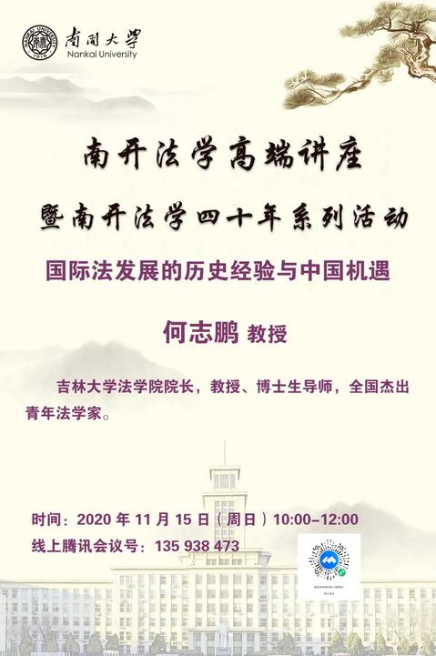 南开法学高端讲座暨南开法学四十年系列活动预告:国际法发展的历史经验与中国机遇(何志鹏,11月15日10::00)