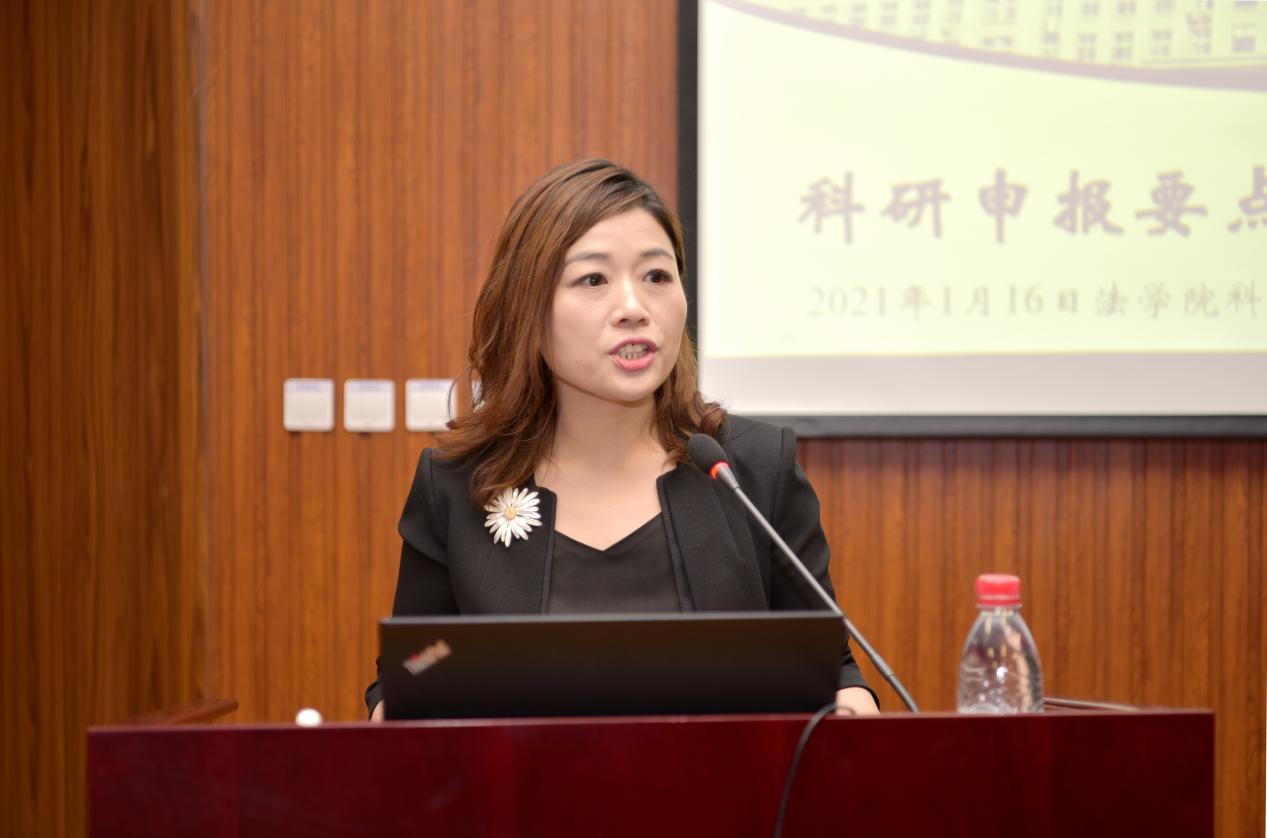 ylzzcom永利线路检测中心人文社会科学研究部常务副部长管健以国家社科基金项目、集团文科发展基金项目、智库成果项目等项目申报要点为主题,紧紧结合法学学科实际,细致阐述、深入讲解,提出有关课题项目申报要立足党和国家事业发展需要,聚焦回应经济社会发展中的全局性、战略性和前瞻性的重大理论与实践问题,精准分析、耐心打磨。