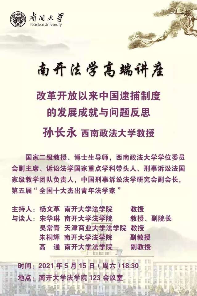 讲座预告:改革开放以来中国逮捕制度的发展成就与问题反思(孙长永教授,5月15日19:30,ylzzcom永利总站线路检测123)
