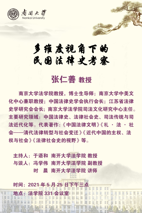 讲座预告:多维度视角下的民国法律史考察(5月25日15点,ylzzcom永利总站线路检测331)