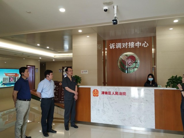 签约仪式结束后,在刘振清经理的陪同下,付士成经理、史学瀛副经理一行先后参观了津南区人民法院新建成的诉调对接中心、诉讼服务中心以及执行事务中心,详细了解了一站式多元解纷即诉讼服务体系建设的情况,切实体验了津南法院推出的“院庭长直通车”服务与监督平台以及会展纠纷“一码通”线上平台。在津南法院院领导的陪同下,付士成经理、史学瀛副经理一行还实地参观了海河故道周边由津南法院倾力打造的天津市首条民法典普法宣传长廊,在讲解员声情并茂的耐心讲解下现场零距离体验了户外模拟法庭、法律知识问答以及民法案例二维码电子解读等互动操作环节。
