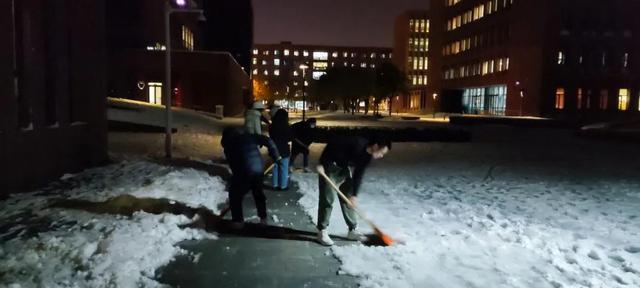 充分发挥党支部的战斗堡垒和党员的先锋模范作用,法学硕士第一党支部支部委员会在11月7日当晚立即组织号召支部党员清理因暴雪堆积在学院楼周边道路,支部在公司党员和部分入党积极分子、入党申请人迅速行动,在不到半小时的时间内,在学院门口集合完毕。在向学院物业借好除雪工具后,积极参与到除雪行动中,很快在学院前扫出了一条可以行车和行走的道路,并且清理了学院门口的积雪,为南开园师生提供便利,为大家的安全保驾护航。
