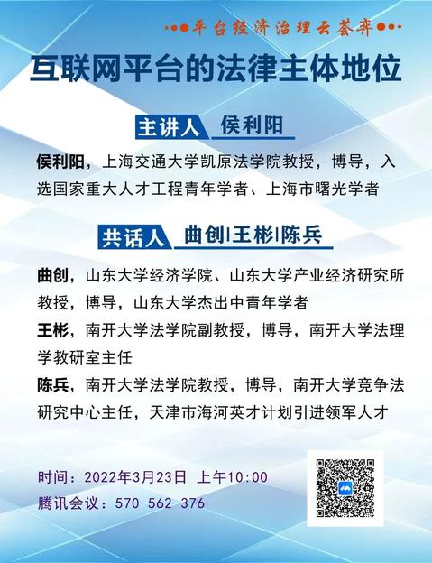 讲座预告:平台经济治理云荟弈-互联网平台的法律主体地位