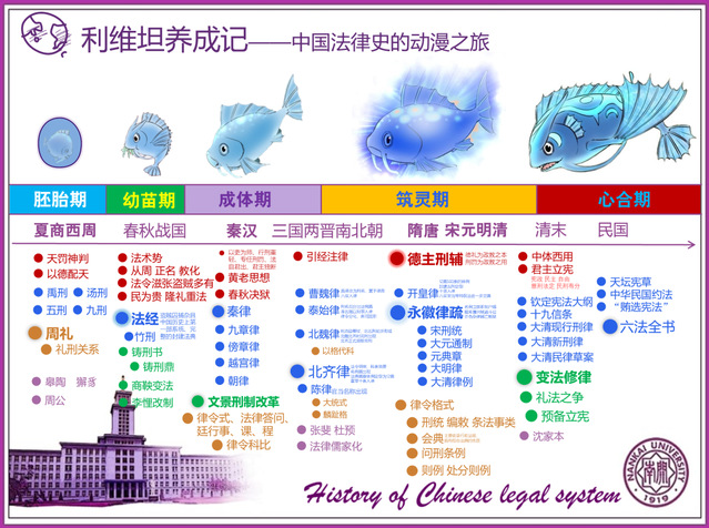 作为半路出家的门外汉,我没有听过一门完整意义的本科中国法律史课程,最早的听课感受来自于2001年母校太原理工大学开办的法硕辅导班,当时聘请山西大学周子良教授讲授《中国法制史》,尽管周老师的普通话不很标准,但其中的“八五十一”带数型记忆法对我影响很大。之后四次备考法硕,我的法律史知识更多是从“网络搜索下载班”学来的,如郭成伟、刘广安、赵晓耕等教授的网络音频课,其中的“武德律,开其端;贞观律,定其型;永徽律,疏其议;开元律,刊其定”口诀也是促成我撰写法制史歌诀的直接诱因。