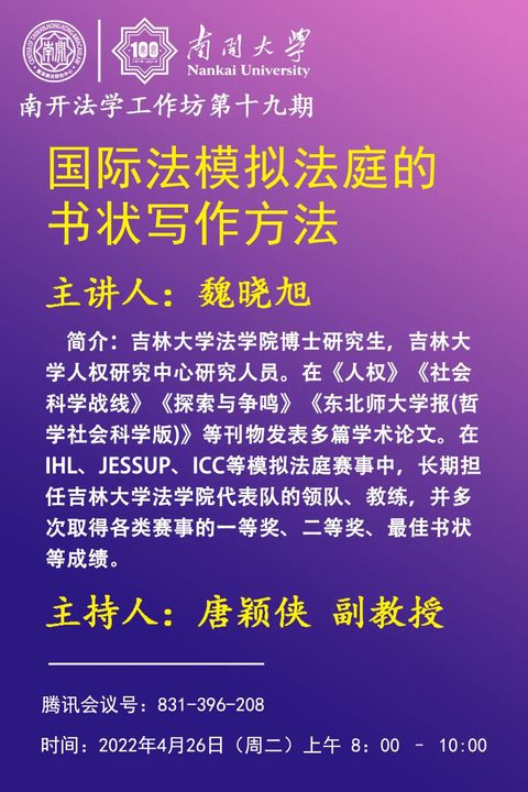 南开法学工作坊第十九期:国际法模拟法庭的书状写作方法