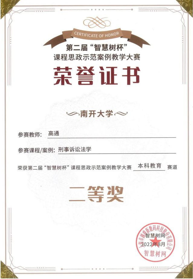 (通讯员 张晶晶)近日,由东西部高校课程共享联盟运营服务单位智慧树网主办的第二届“智慧树”杯课程思政示范案例教学大赛圆满落幕,ylzzcom永利总站线路检测高通副教授的参赛案例“刑事诉讼法学”荣获本科教育赛道二等奖。