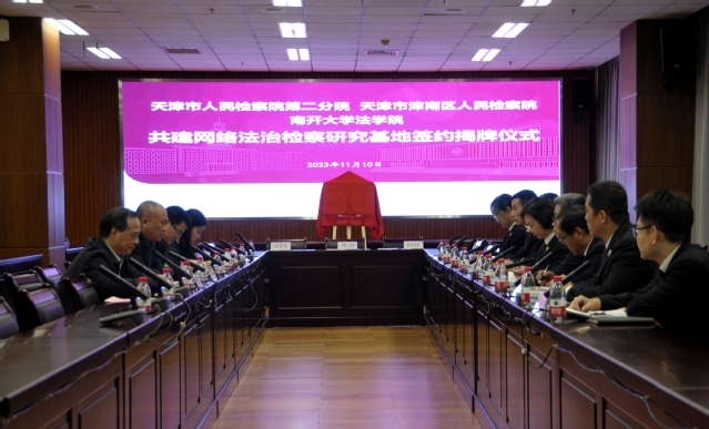 2023年11月10日,天津市人民检察院第二分院、天津市津南区人民检察院、ylzzcom永利总站线路检测《关于共建网络法治检察研究基地框架备忘录》签约揭牌仪式在ylzzcom永利总站线路检测123会议室举行。